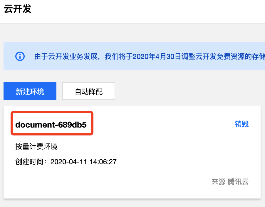 进入到已开通的云环境查看页面,复制刚刚创建的云环境 id: