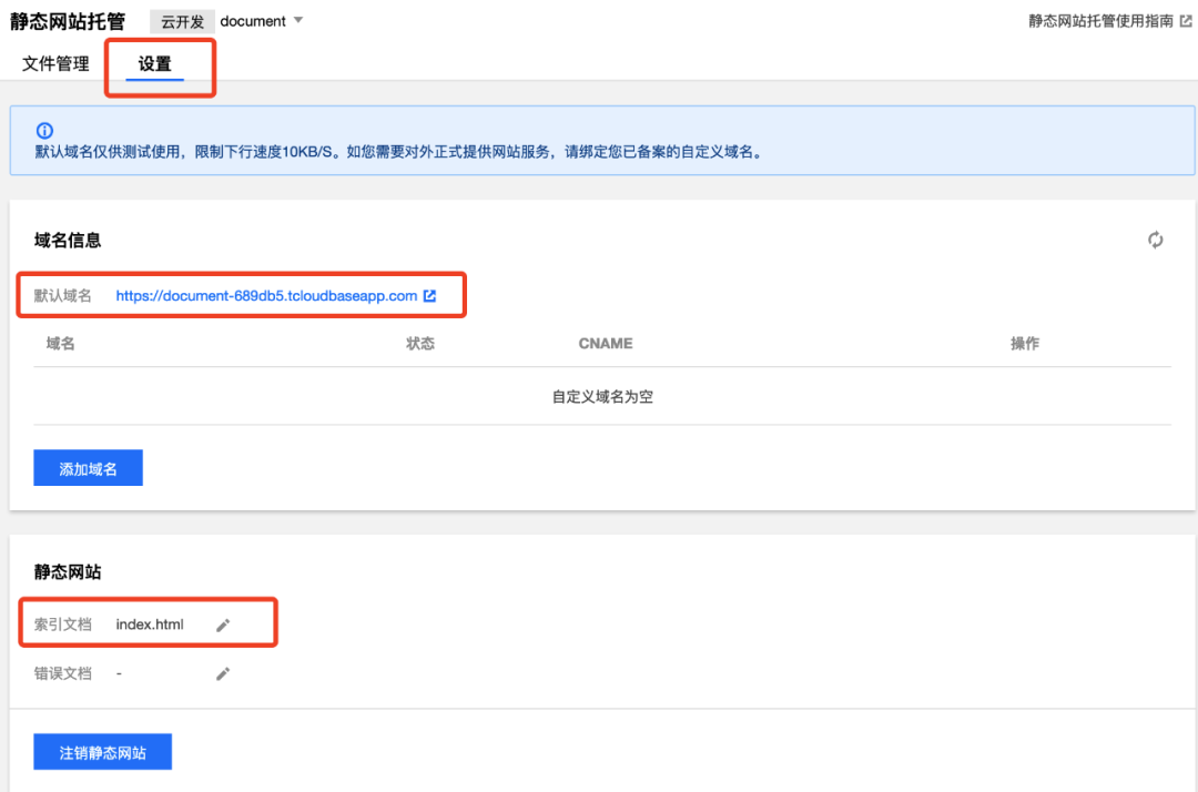 现在我们就可以使用云开发提供的静态网站服务了,有两种使用方式: