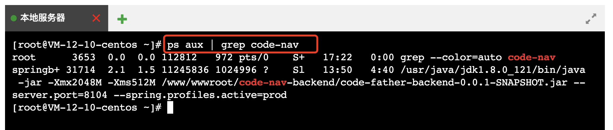 想确保项目已启动,可以使用 Linux 的 ps 命令查看应用进程,比如: