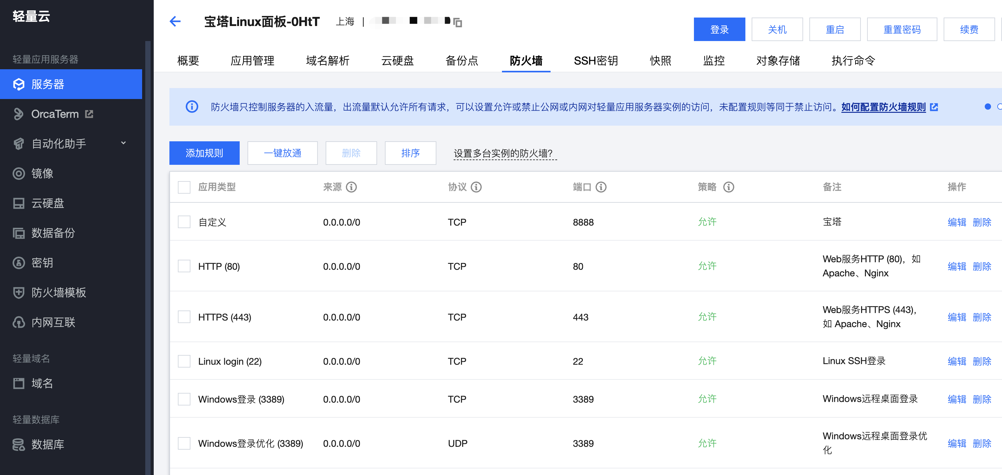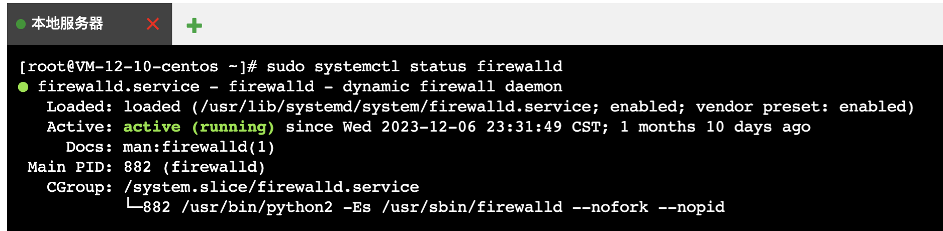 为了保护系统安全,Linux 系统内置了防火墙,除了在云服务商侧开放端口外,最好也检查一下防火墙的配置。