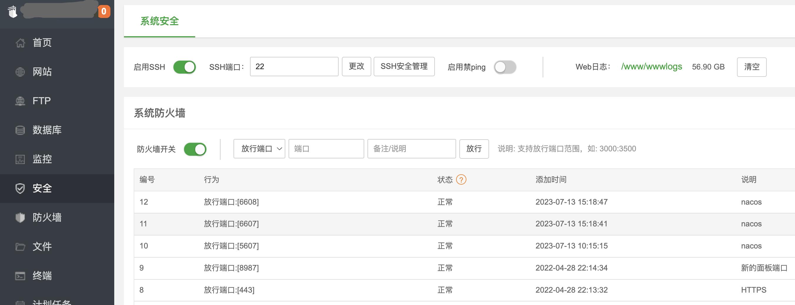 比如宝塔 Linux 的安全 / 防火墙面板: