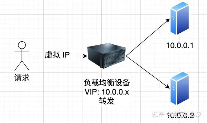 这一层的负载均衡设备会对外提供一个虚拟的 IP 地址(VIP)以接收请求,然后根据算法将请求转发到 IP 地址不同的目标机器。