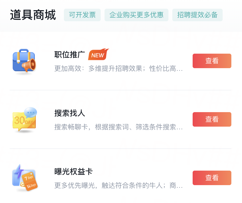 了解完市场行情后,我就在平台发布了岗位,有意思的是,平台提供了非常多的小道具,能给我的岗位增加更多的曝光量。但我是不相信这类道具的效果的,有缘人自然会出现~