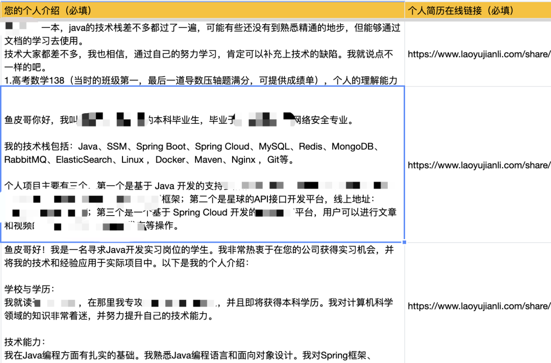 分享几个通过候选人初筛的同学的个人介绍,大家可以思考一下,是你的话会如何介绍自己呢?