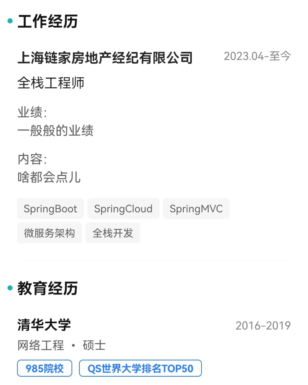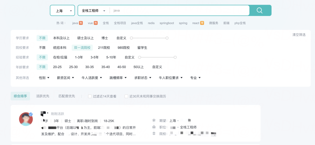 不过我也不指望用这种 “搜索” 的方式招人,因为学历、经验这些标签,都是候选人自己可以随意修改的,你懂我的意思吧。