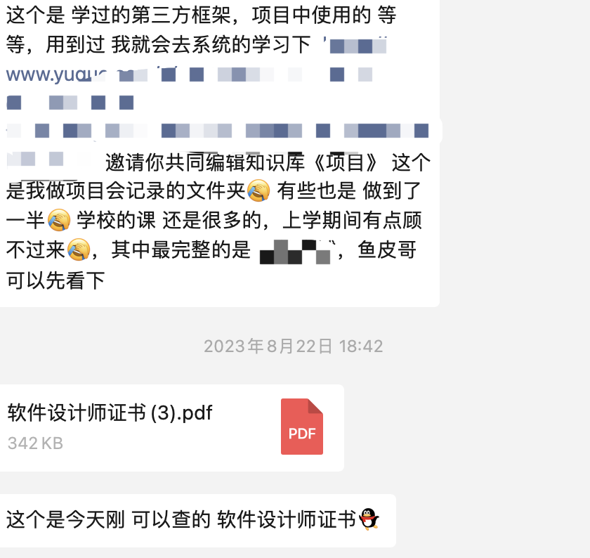 由于我是让所有投递简历的同学留了自己的联系方式,所以我一一个加了这些同学,然后在通讯工具上和他们交流,进一步确认一些信息,便于我筛选出真正符合要求的同学。