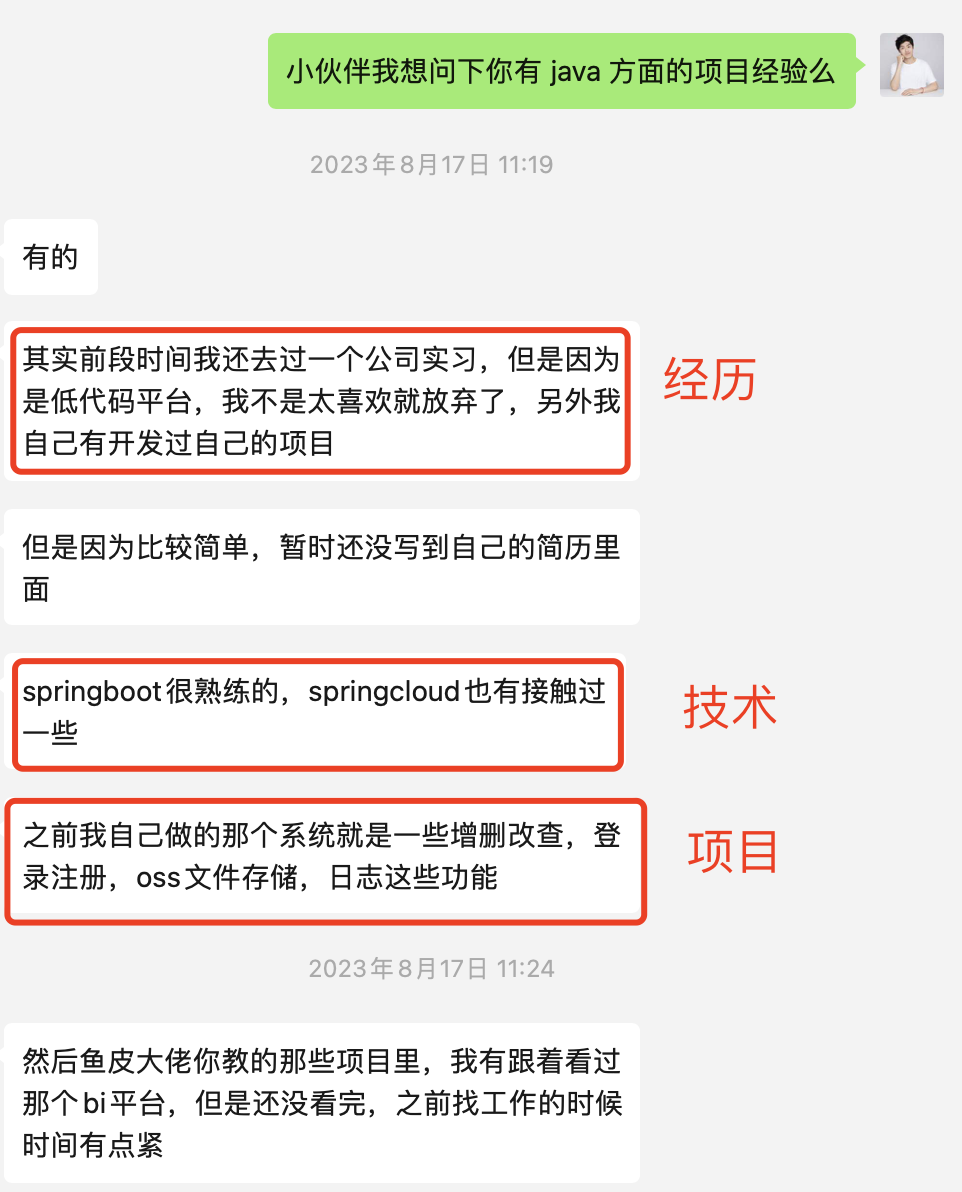 但有的同学,在我的几个问题下 “漏出了马脚”,发现了简历上的项目是包装的。。。