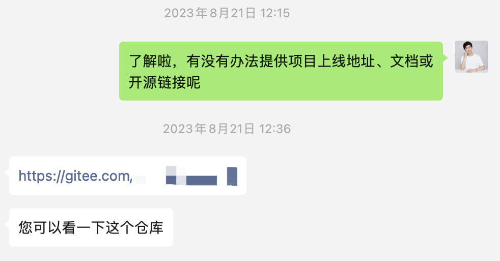 还有的同学会给我发自己的代码仓库地址,同时紧急上线了一下自己的网站: