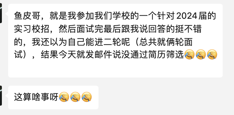 我非常能理解这位小伙伴的心情,因为我当年在面试的时候,也遇到过同样的情况。尤其是秋招面试百度的时候,面试官笑容十分灿烂,也夸我实践经验丰富什么的,但最后毫不留情地给我挂了。