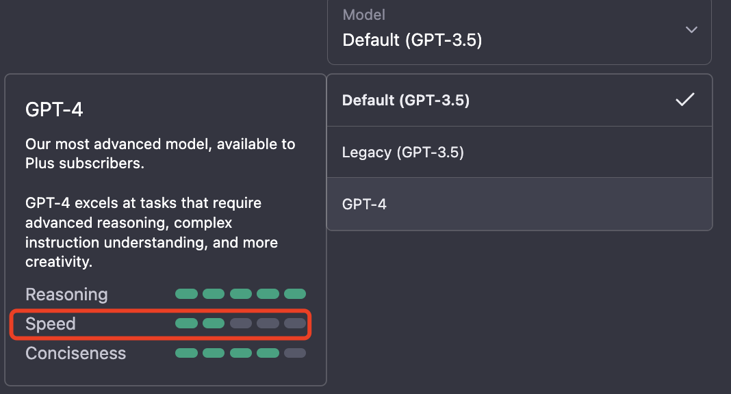 不过虽然 GPT-4 模型的逻辑性、上下文理解能力都变强了,但它的缺点也很明显,就是速度太慢了!