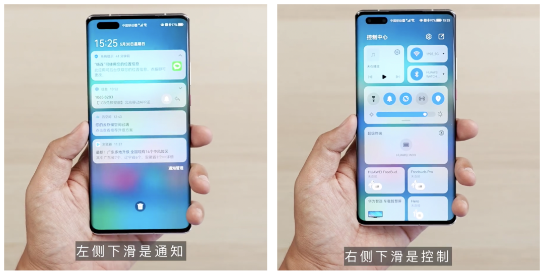 包含了控制中心、服务中心、通知中心。通过在屏幕不同位置(左右侧)下滑,可以打开对应中心,集中查看和管理应用。
