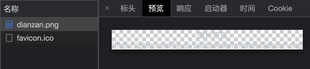然后我直接复制图片的地址,刷新页面,结果就看不到图片了。按 F12 来监听网络请求,发现图片请求并没有得到正确的响应,反而得到了一个 favicon.ico: