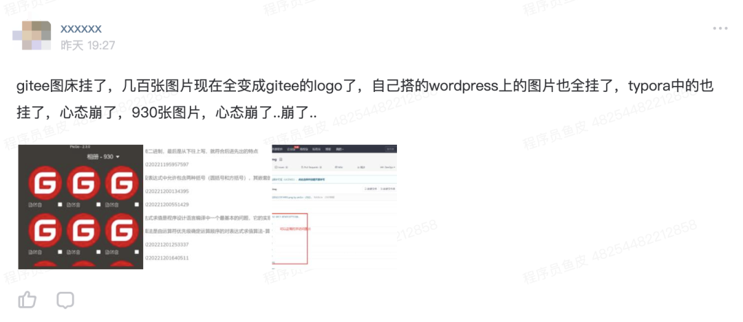 昨天晚上,编程导航里不止一位小伙伴发帖子表示自己网站、文章中的图片竟然全部变成了 Gitee 的图标?!