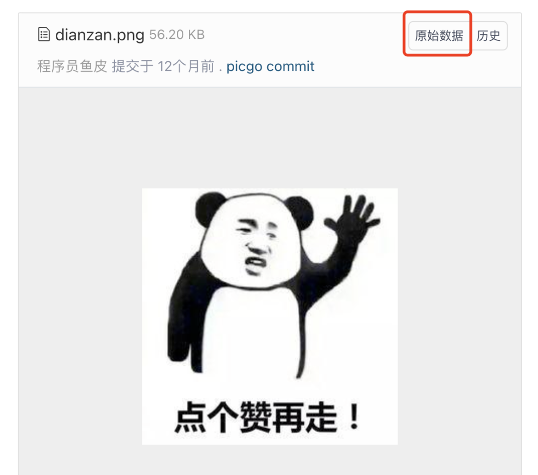 然后我进入 Gitee,找到自己之前搭建的图床仓库(专门用来存放图片的代码仓库),随便找到一张图片,先进入图片查看页(路径包含 blob),然后点击原始数据查看原图: