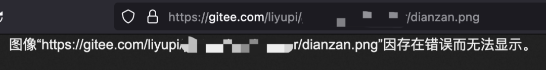 为了验证这点,再做个实验。先用 Firefox 浏览器直接打开 Gitee 图片的真实地址,果然无法显示: