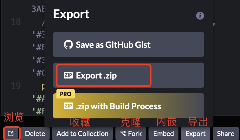 得益于前端技术的发展,这个网站为开发者提供了搜索项目、在线编辑、分享导出的一条龙服务,使得我们能够以自主练习的方式轻松学习别人优秀的代码。