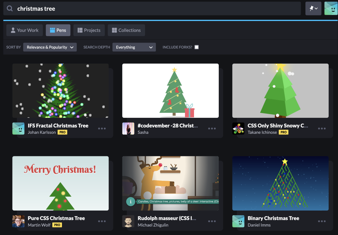 国外的在线前端编程网站,在这里你可以发现很多国外大神编写的前端代码,除了各种网页布局代码外,更多的是各式各样好玩的、炫酷的、新颖的前端动画和特效。