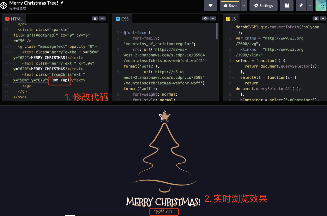 我是不会,但是在这个网站中,输入 "Christmas Tree" 搜索,就能看到各种不同风格的圣诞树网页啦!