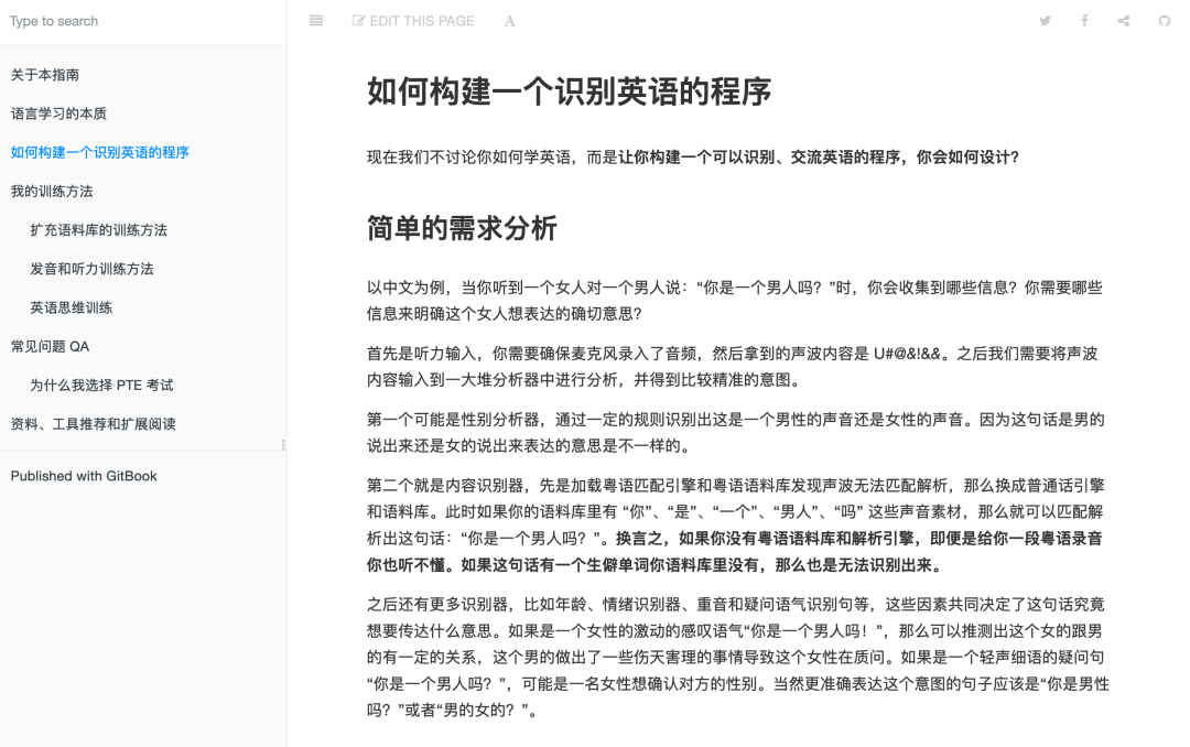 该指南会深挖语言学习的本质(主要用中文举例)并用程序员易于理解的方式去思考,并提供自己根据本质推演出来的训练方法和经验做参考。重中之重是你要根据本质自己设计适合自己的训练方法,同时可以甄别网上看到学习方法和资料,判断是否适合自己使用。