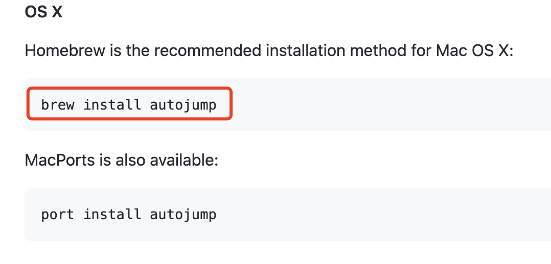 首先让我们先跟着官方文档来安装 autojump ,它同时支持 Linux、MacOS 和 Windows。