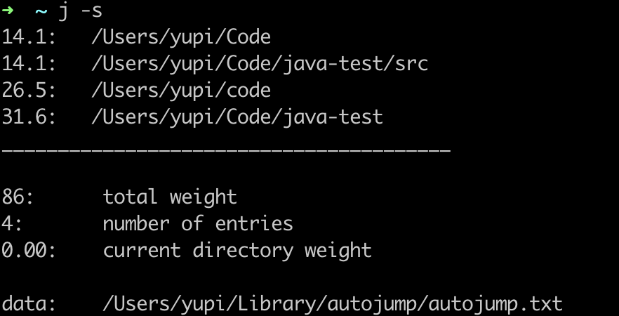 autojump 提供了许多实用的命令,其中最常用的是 j 命令,也可以称为 “只因” 命令!