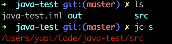 输入 jc s 就可以快速跳转到当前目录下包含 "s" 的子目录,即 src: