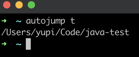 如下图:输入 autojump t ,就自动跳转到了我访问过的 java-test 目录: