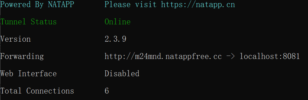 可以看到 NATAPP 给我们分配了一个 http 公网域名,其他同学输入这个域名就能访问到你本地端口对应的项目了。