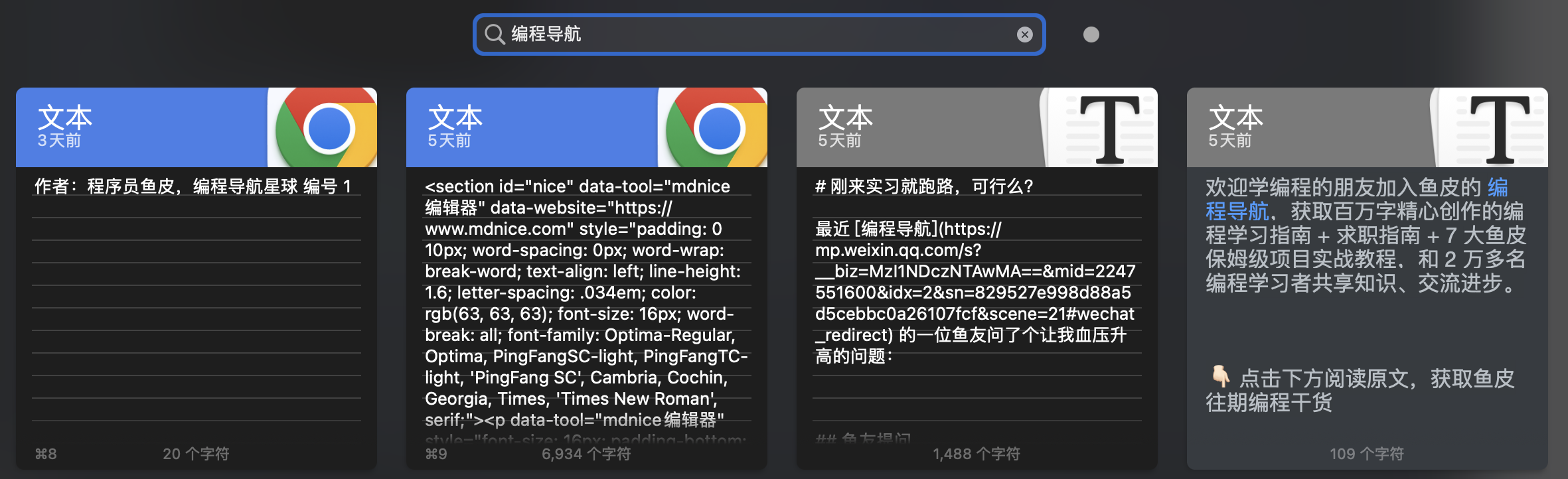 还有一个强烈推荐的软件是 Paste ,Mac 系统上的剪切板软件,可以保存所有复制粘贴的记录,需要再次复制粘贴相同内容时直接用快捷键搜索就能搞定了,无论是写代码、还是服务用户,这个能力都非常有用。