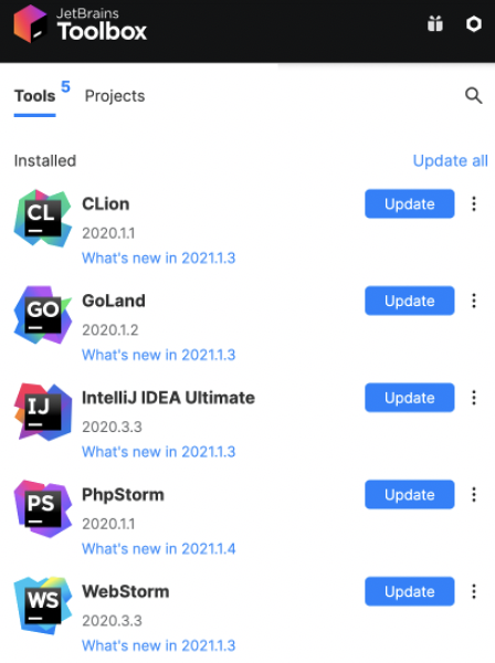JetBrains 全家桶系列几乎覆盖了所有主流编程语言的集成开发环境,是我最喜欢、最常用的开发工具了。工作中,我一般会用 IDEA 写 Java、用 WebStorm 写前端、PhpStorm 写 PHP、Goland 写 Go 语言等,还可以使用 Toolbox 集中管理这几个软件。