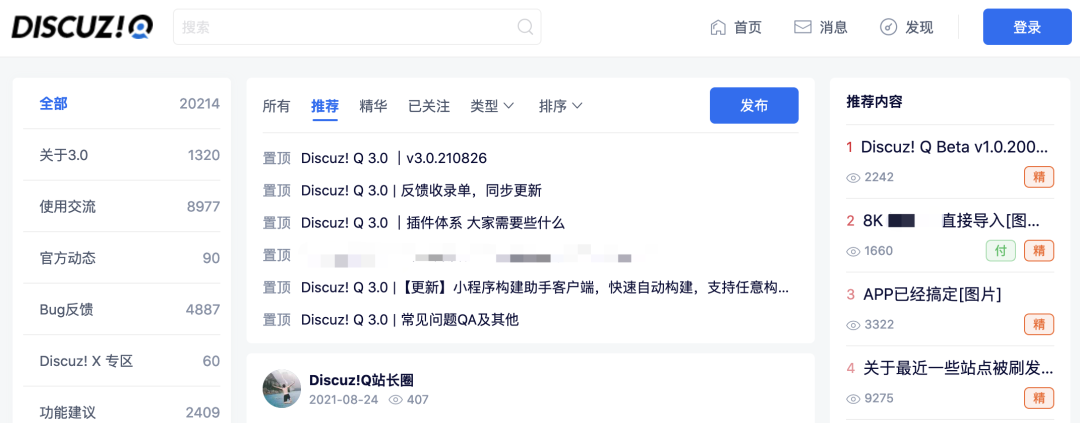 但前段时间,腾讯将 Discuz 升级成了 Discuz! Q,是一个更适配移动端的社区软件,依旧开源,并打通了微信生态(比如微信支付)。