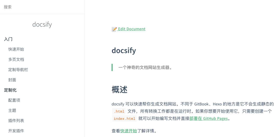 其实我们平时看到一些的很多文档和文章分享网站,都是用 docsify 生成的,不需要任何的技术含量,能够让我们更专注于去写文章而非调整格式。