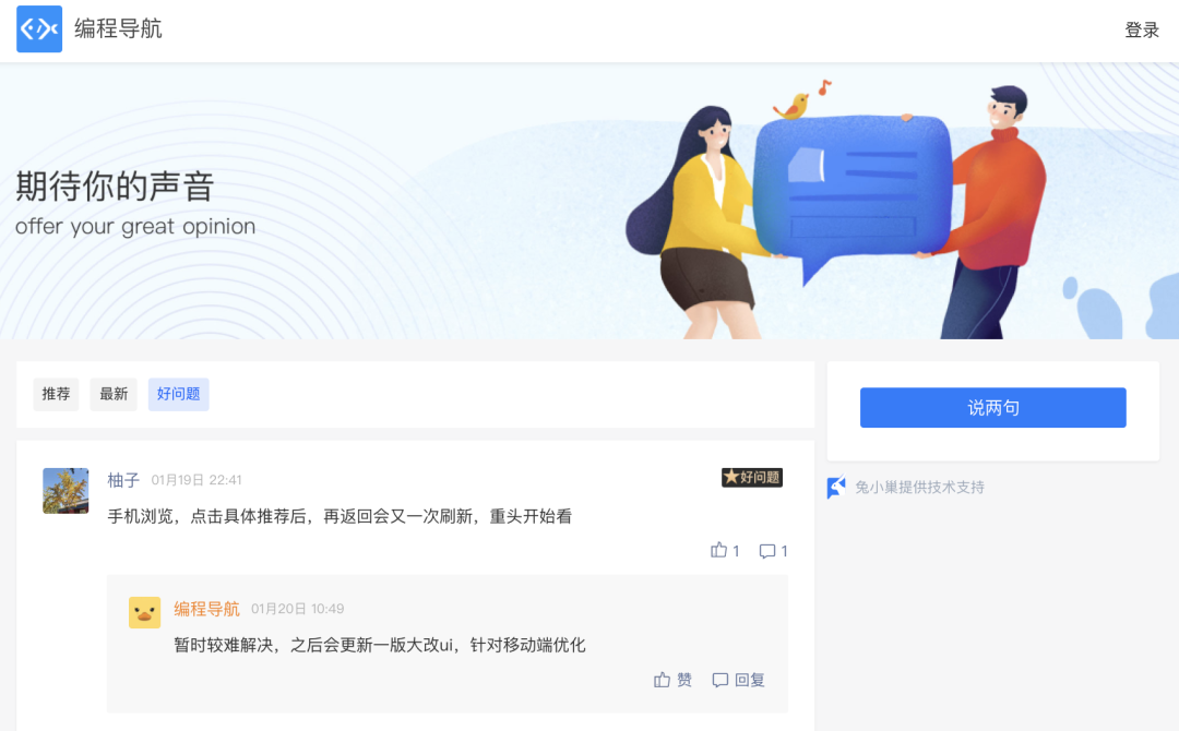 有了兔小巢,这一切都变得简单了。这是腾讯提供的免费、专业的 产品反馈平台 ,可以一键为我们的产品生成一个专属的反馈论坛,从而省去了自己搭建社区的麻烦。