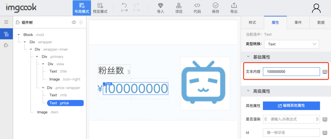 比如我上传一张小破站的截图,Img Cook 自动识别出了几个内容框,然后我就能手动修改内容数据: