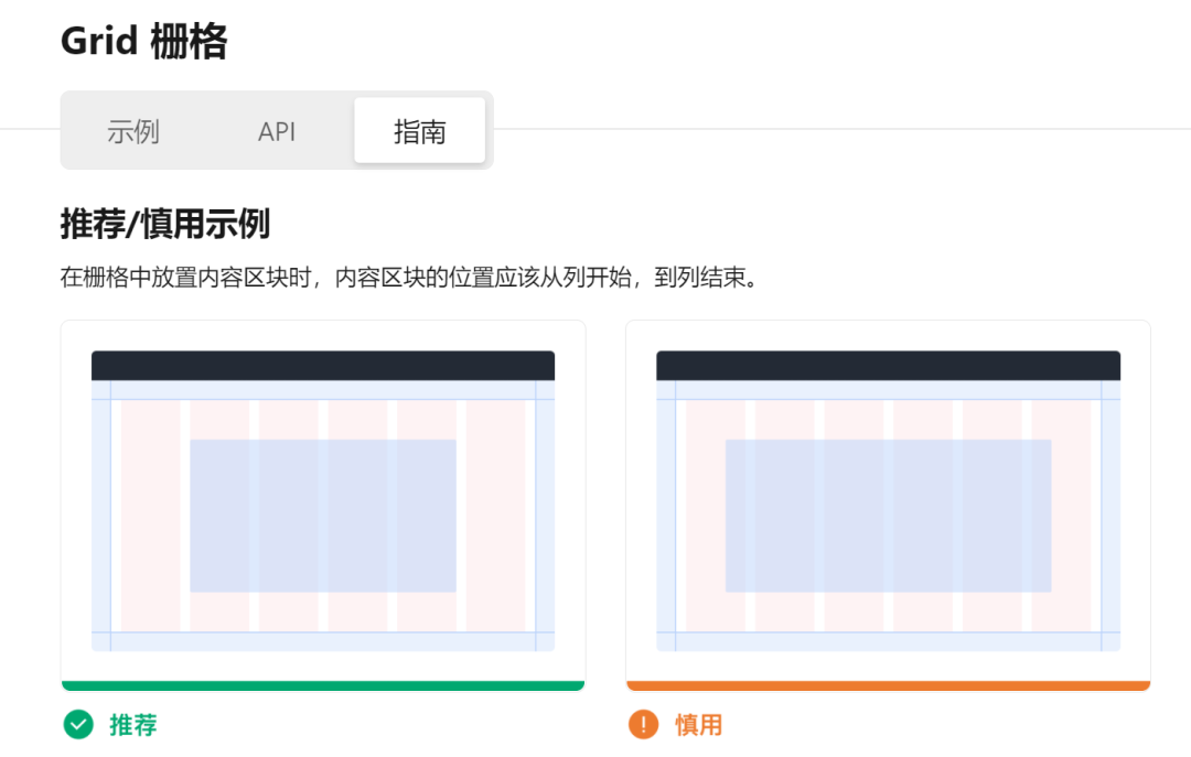 每个组件除了示例代码、效果演示和 API 介绍外,还包含使用指南,帮助你正确高效地使用组件: