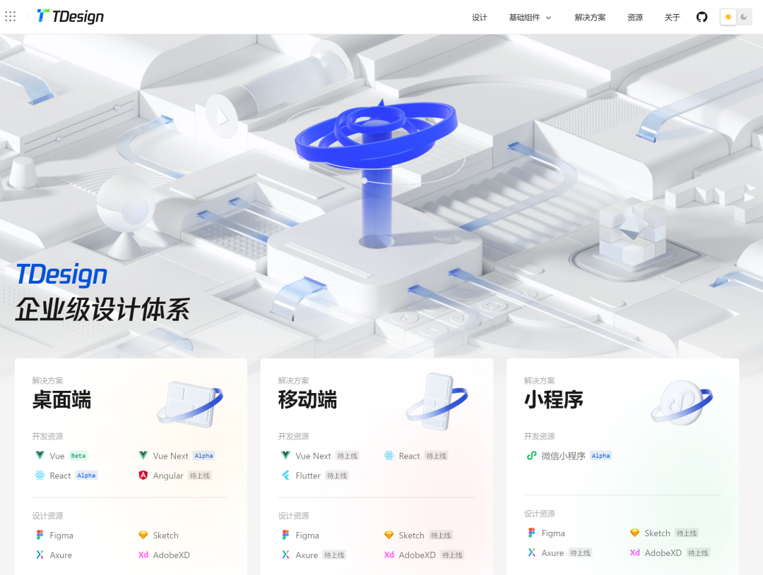 如官方描述,TDesign 是一套拥有完整的 设计价值观 和 视觉风格指南 的企业级设计体系,并且在此基础上,提供了基于 Vue、React、小程序等业界主流技术栈的组件库解决方案,主要用于构建设计统一、多端覆盖、跨技术栈的企业级前端应用。