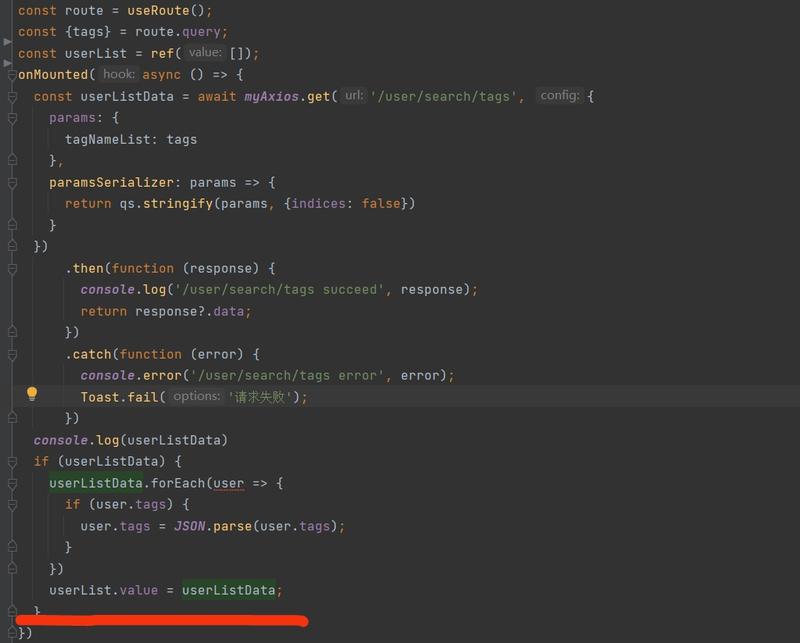 举个例子,在用户列表页,按照标签搜索后,后端数据正常返回,但页面卡住,一直处于加载状态?