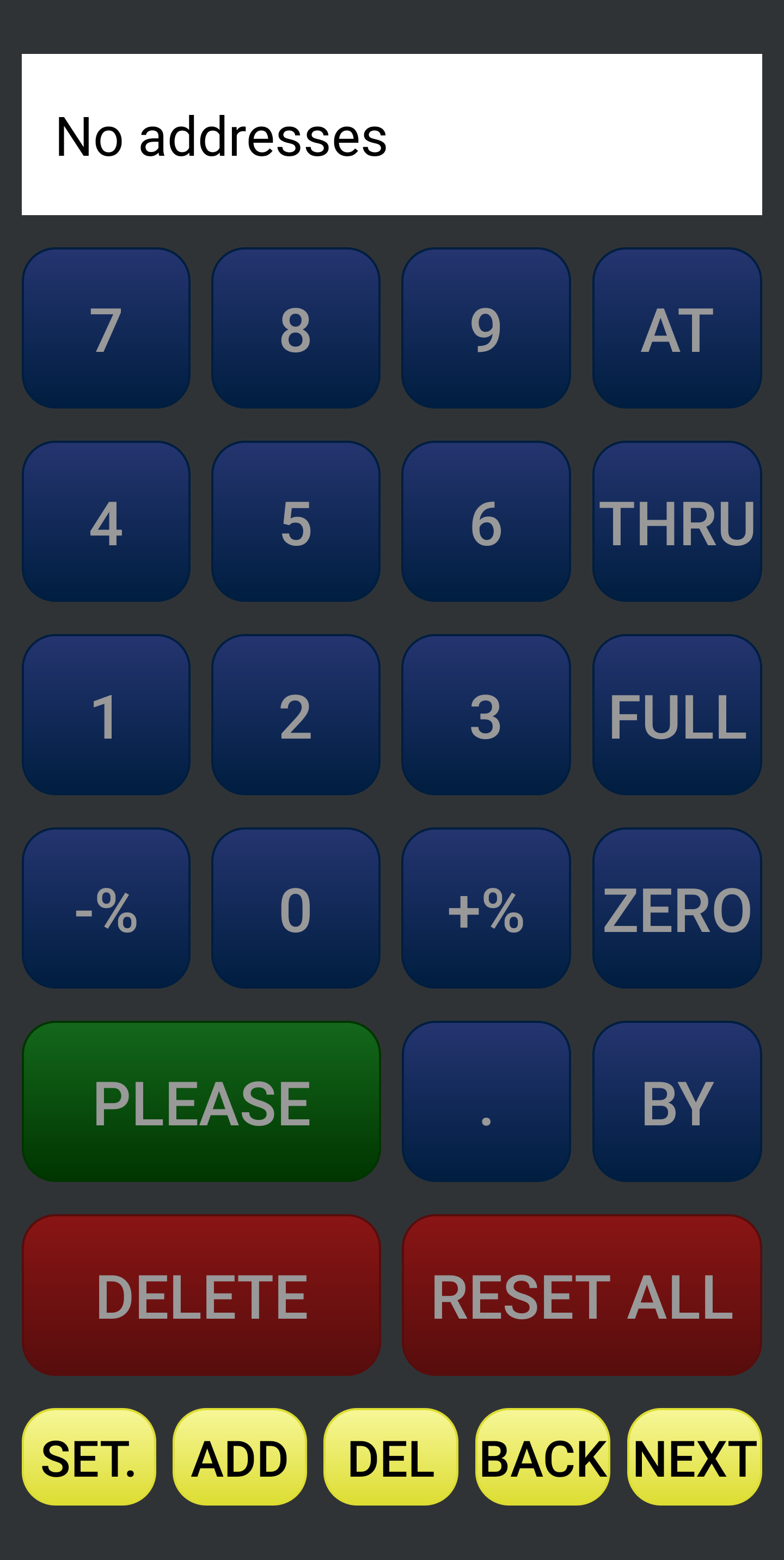 If you are to delete an address, display the address using "BACK" and "NEXT" button and press the "DEL" button.