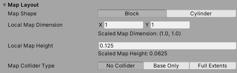 The shape, dimension and collider type of the map can be configured in the layout section.