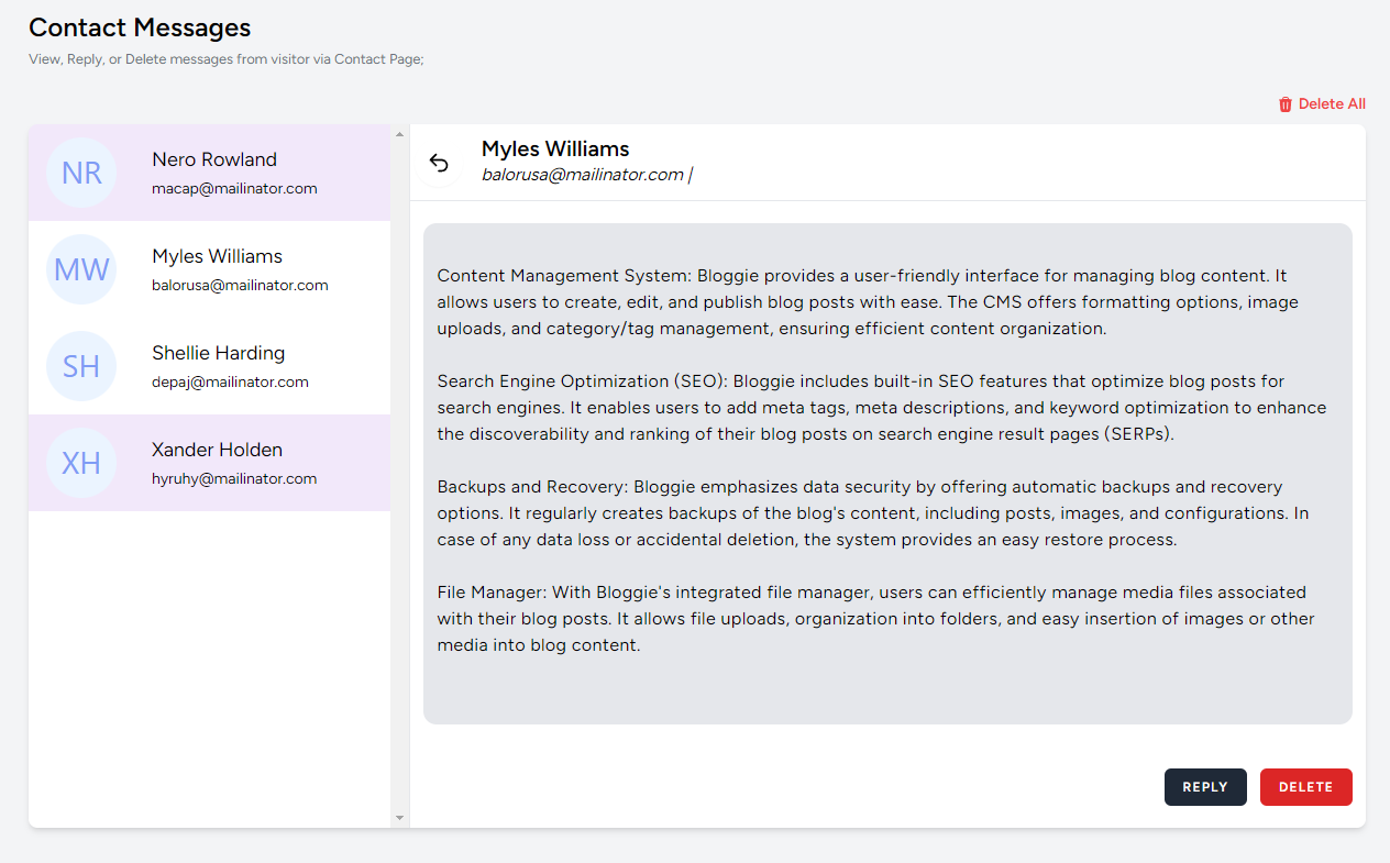 - Inbuilt Contact Reply Sending (SMTP Configuration required).