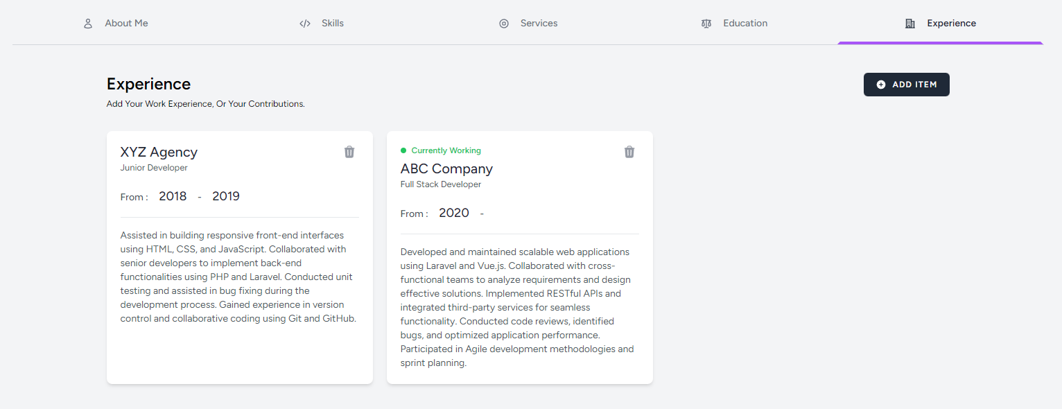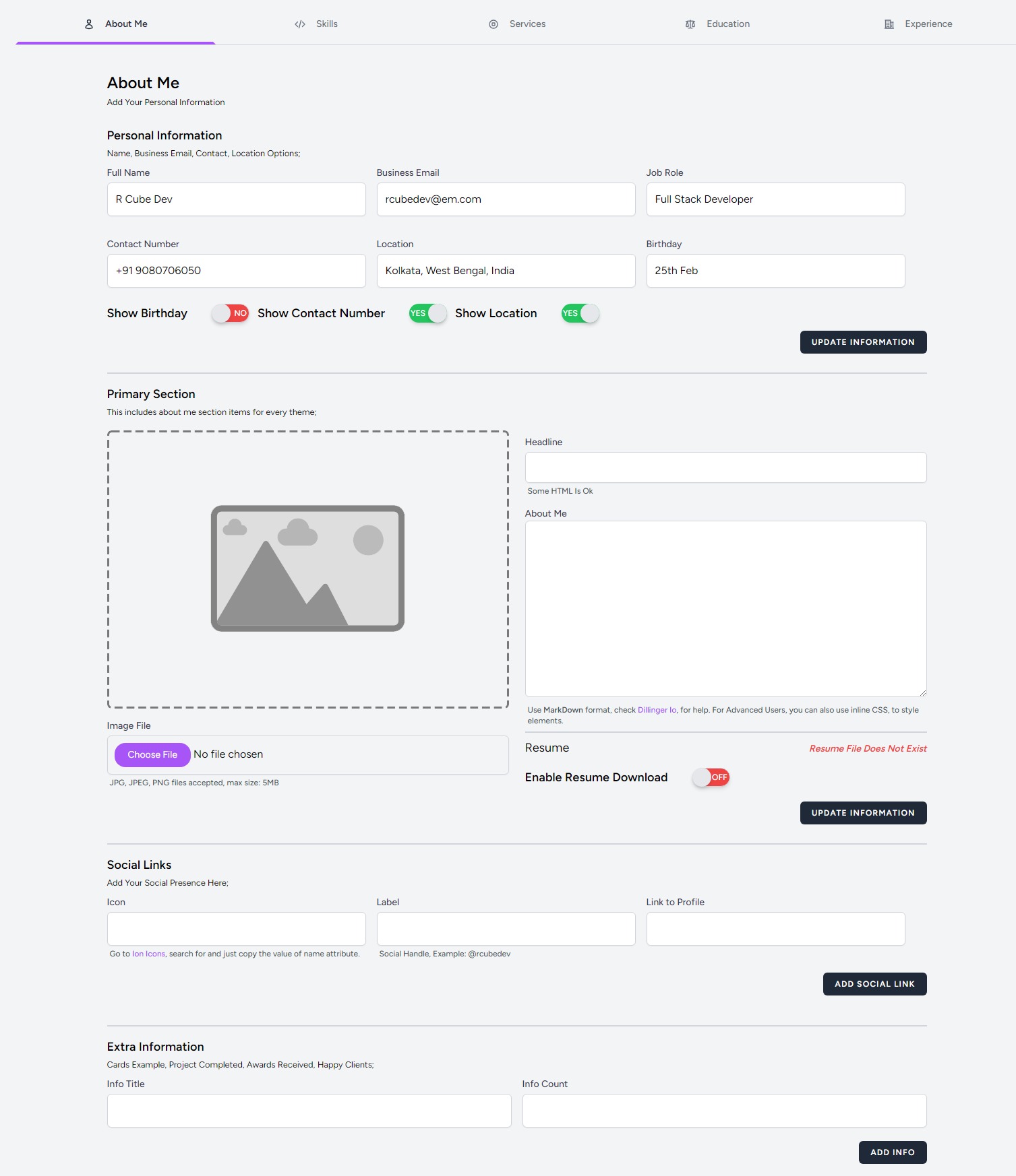 - Dynamic Modules (Homepage, About Me, Portfolio, Skills, Education, Work Experience).