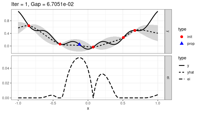 Parameter spaces and initial designs are created with package ParamHelpers.