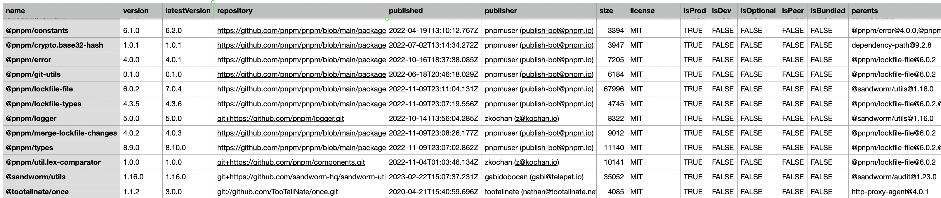 - CSV of all dependencies & license info