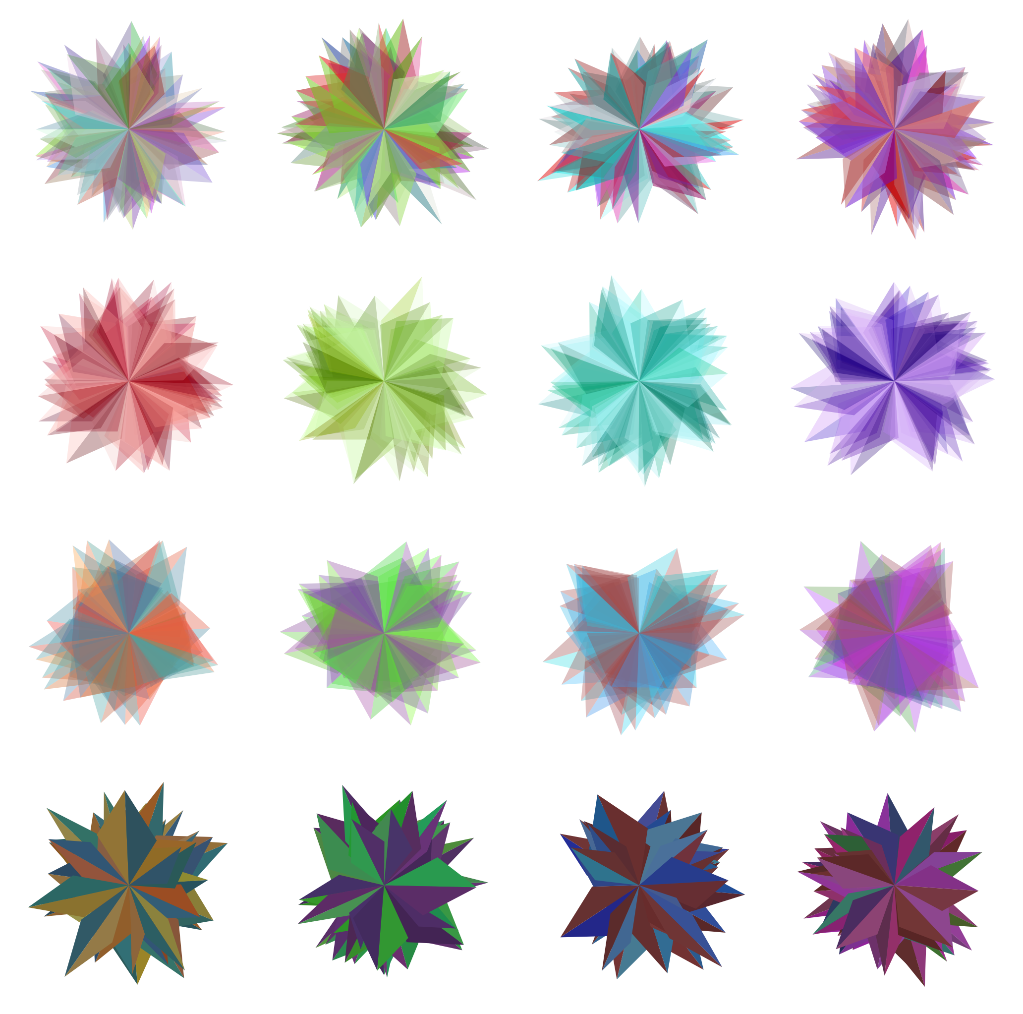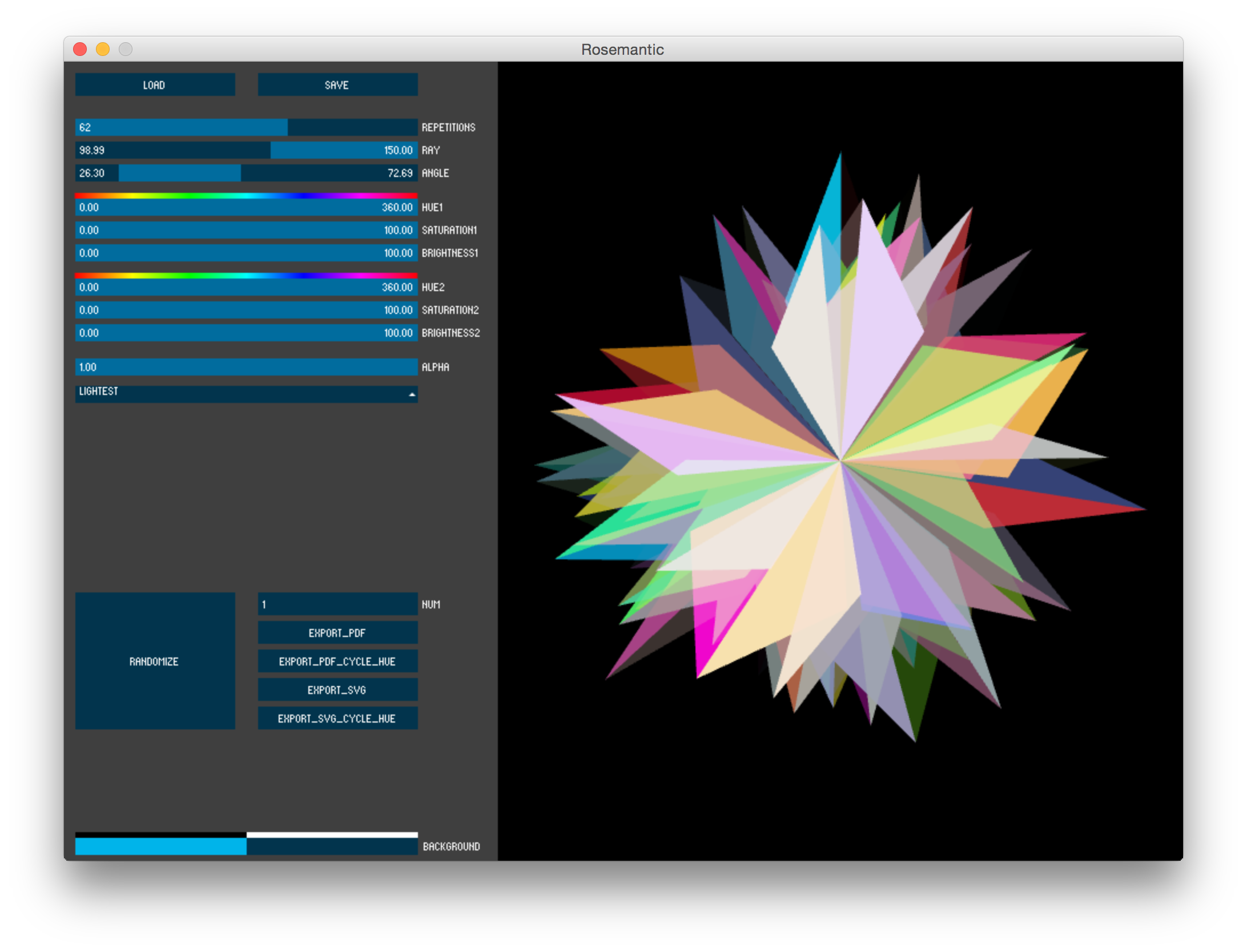The final shapes can be exported in PDF or SVG in bulk, also cycling the hue margins through the hue wheel.