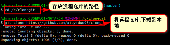 git clone 远程仓库的url filename(生成的文件夹的名称)